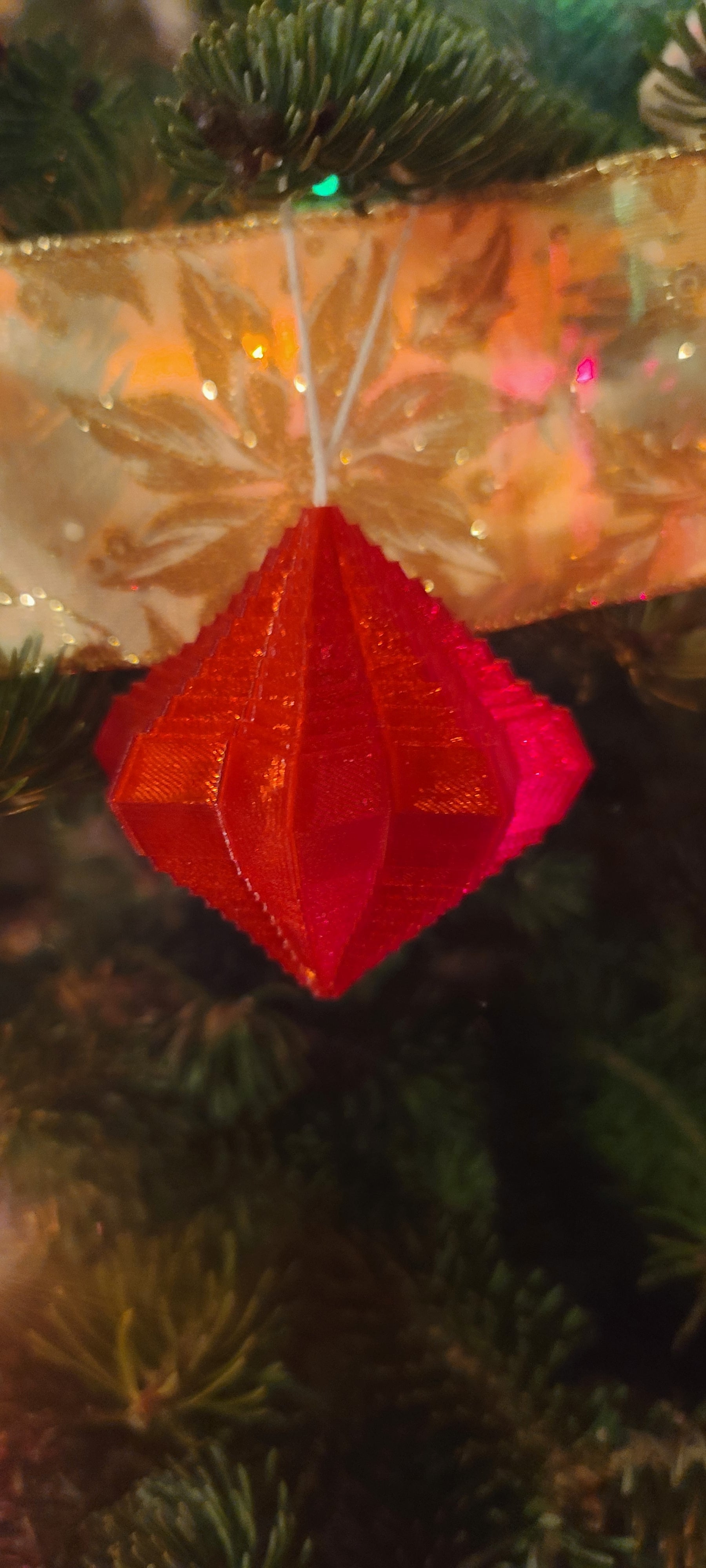 Elevate your holiday decor with the modern brilliance of this unique, 3D-printed ornament. The mesmerizing geometric facets catch and refract the tree lights beautifully, casting a subtle, festive glow.